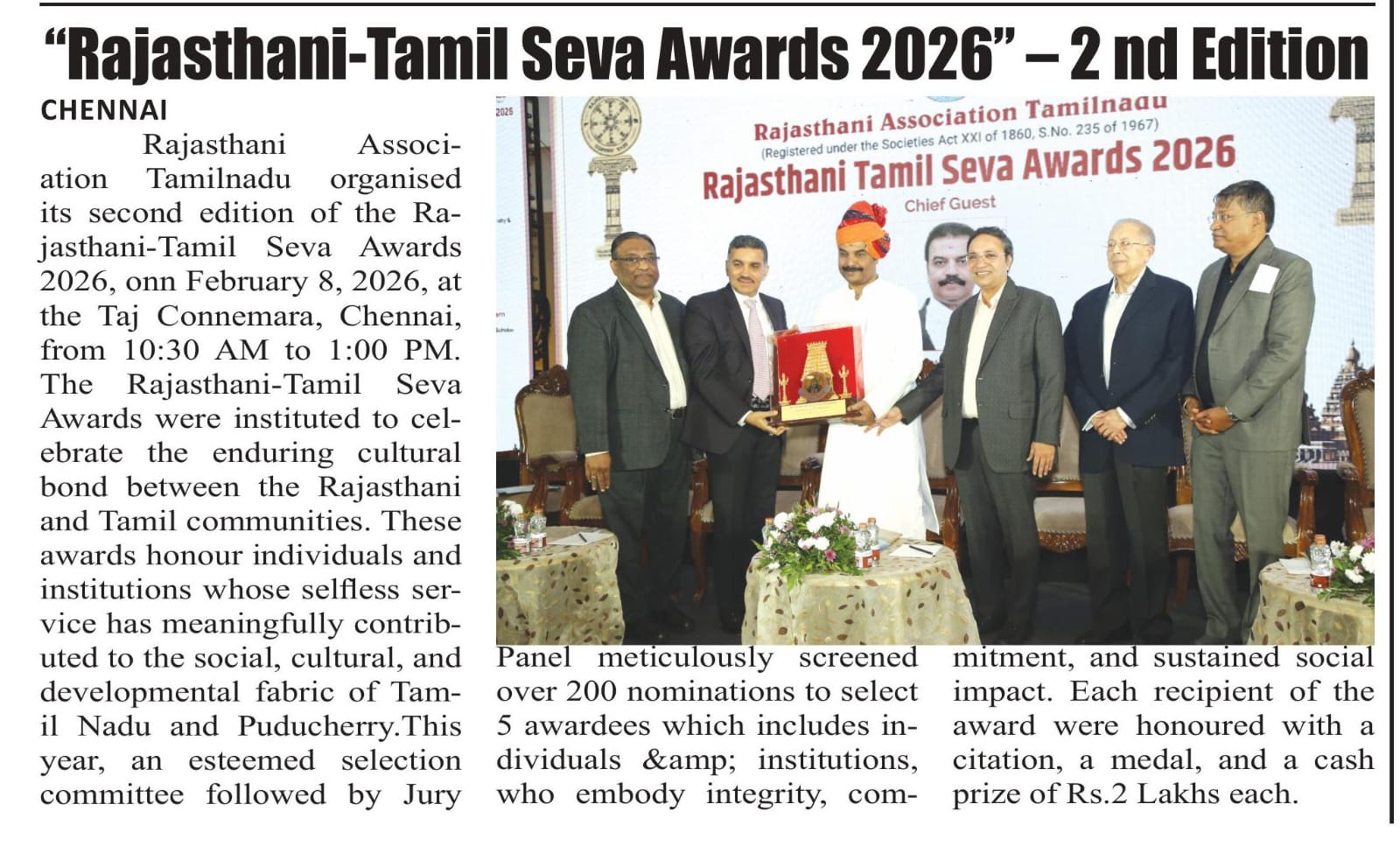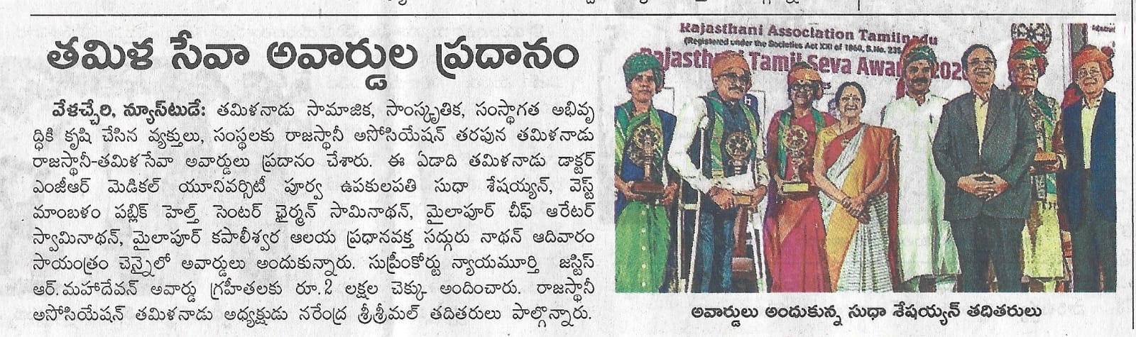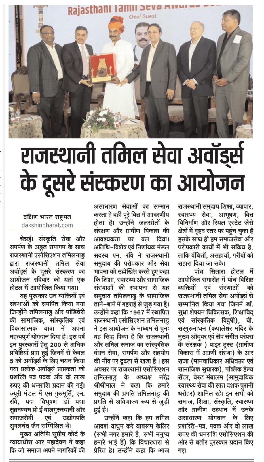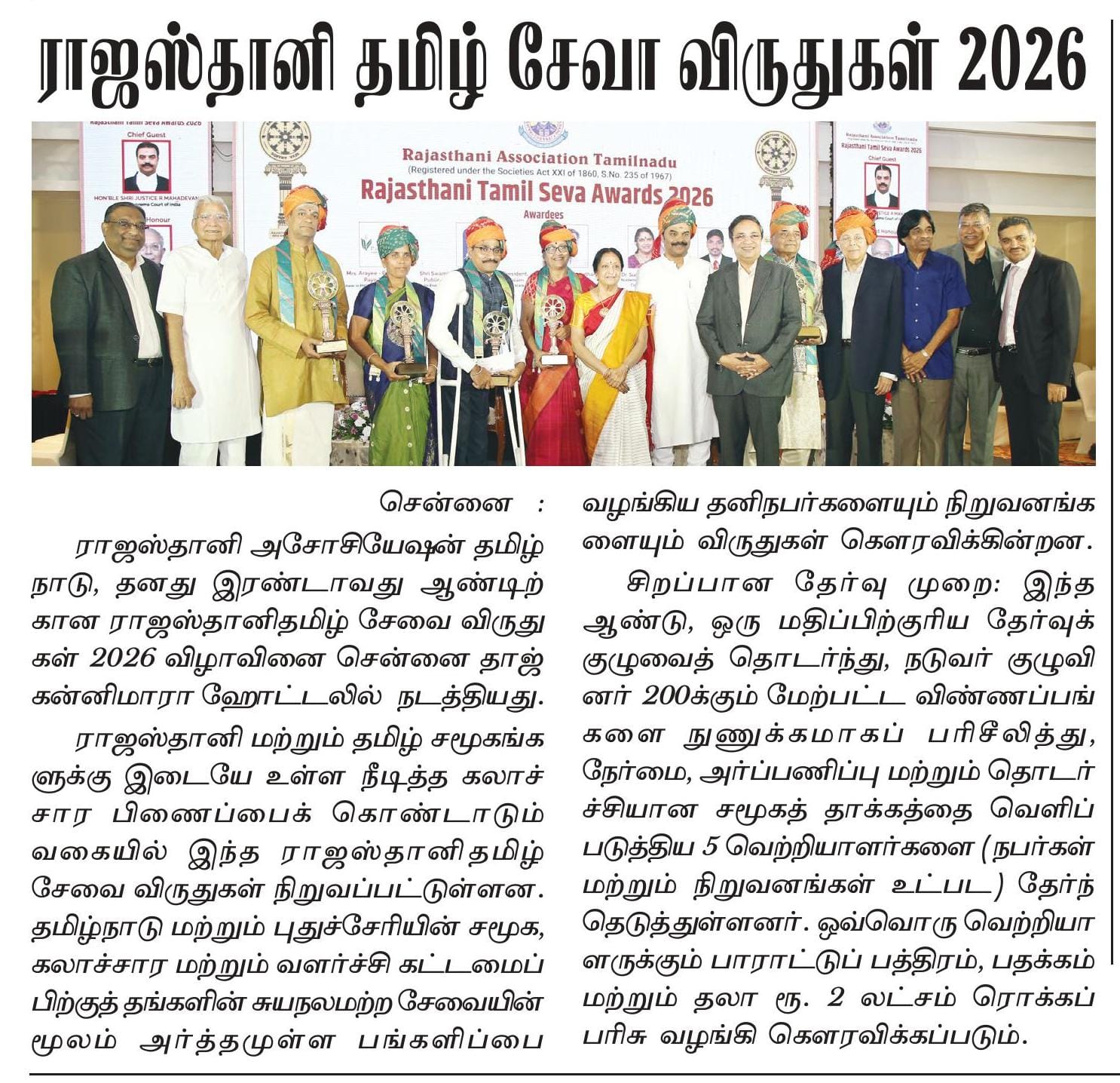 Rajasthani Tamil Seva Award