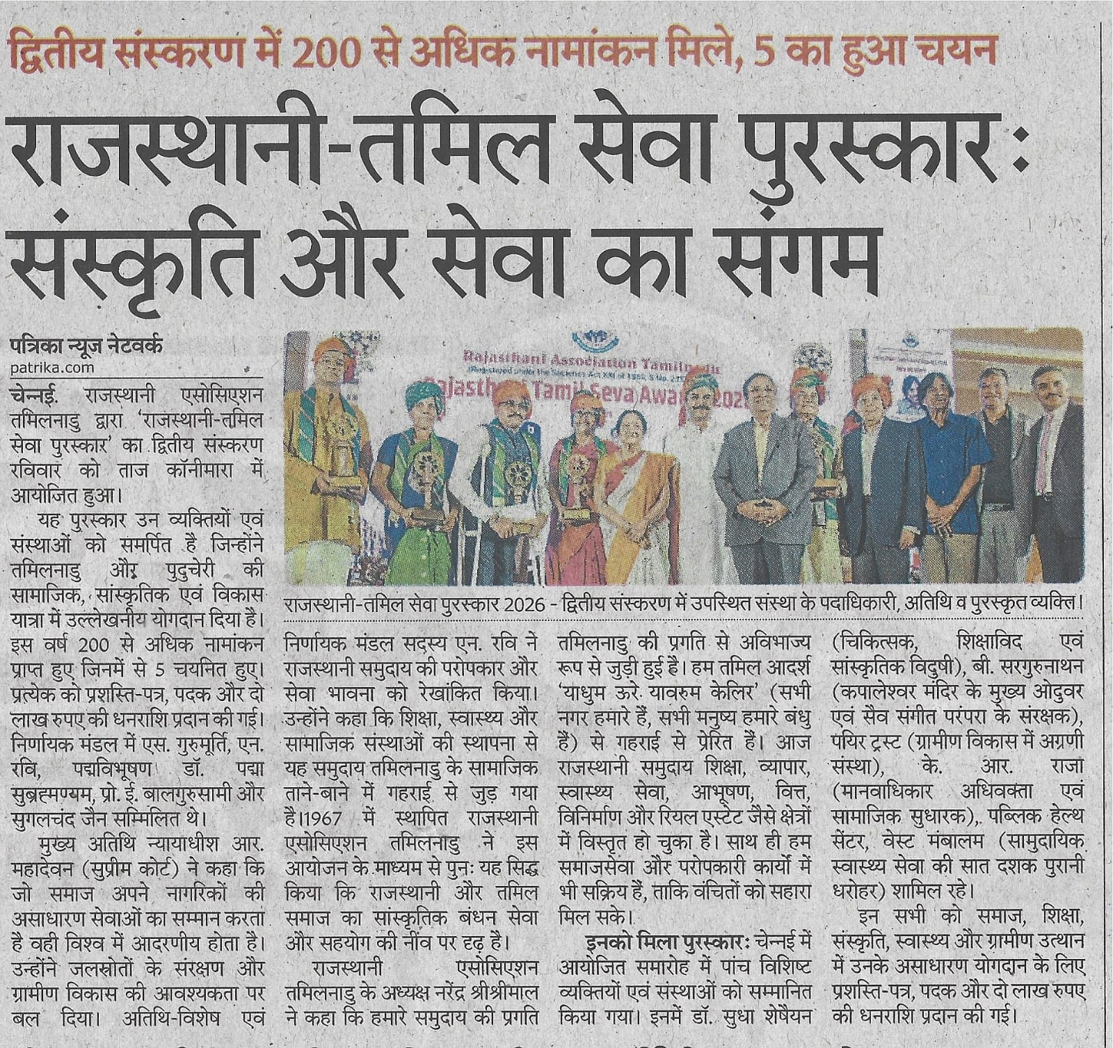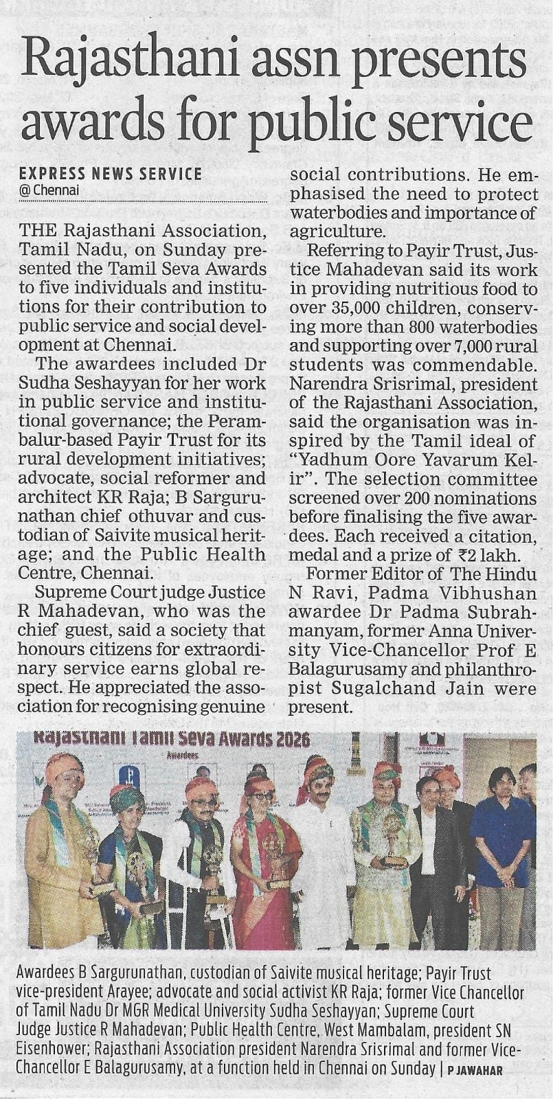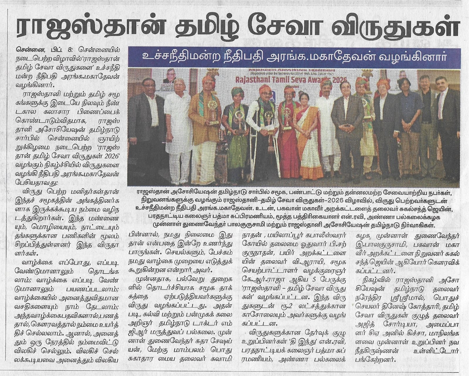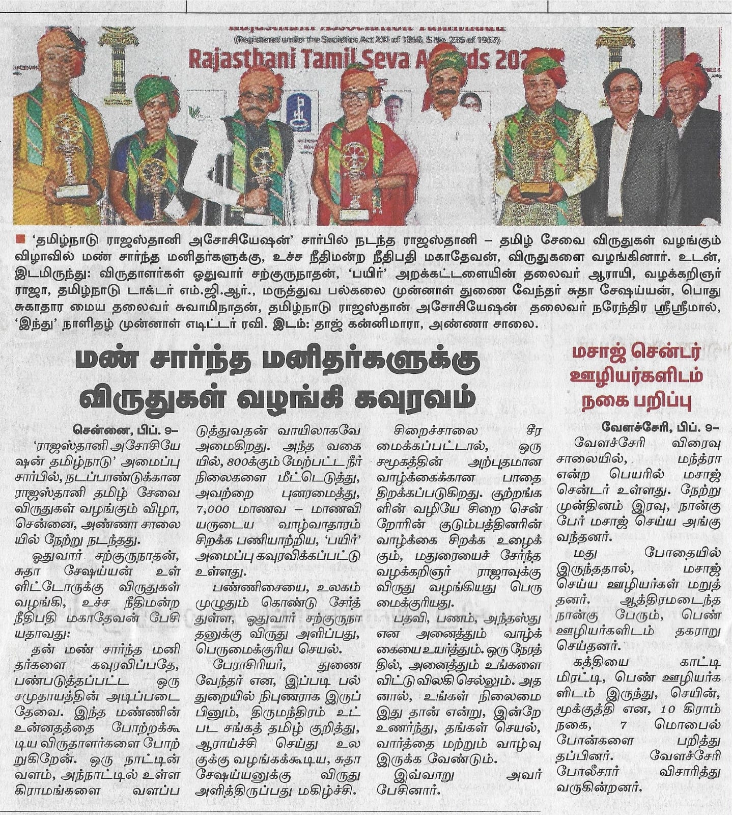 Rajasthani Tamil Seva Award